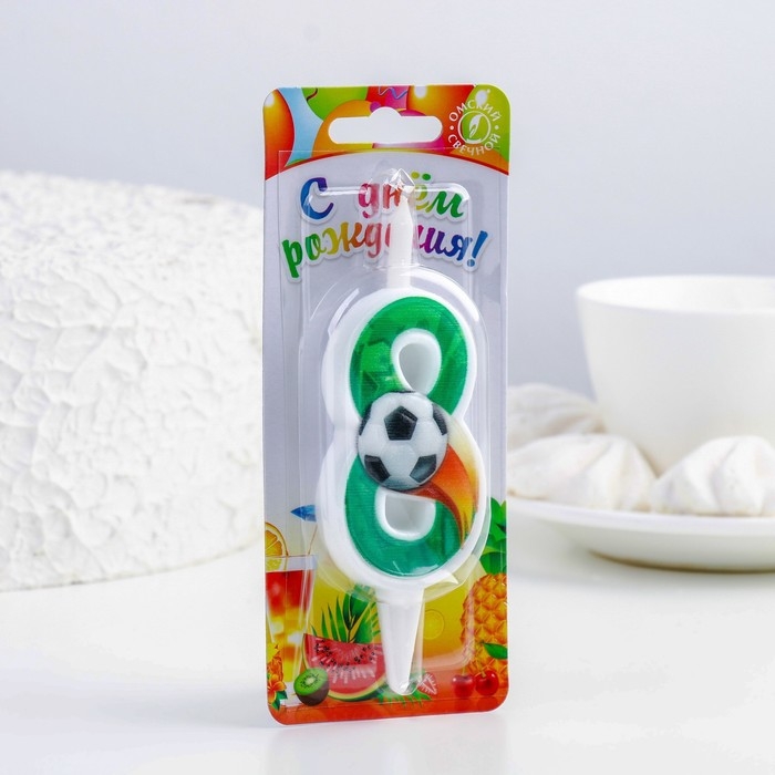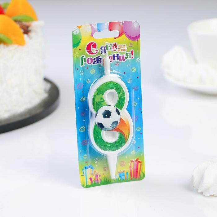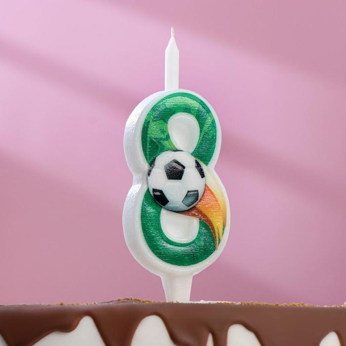 Свеча для торта "Футбольная", 10,2 см, зелёная цифра "8"