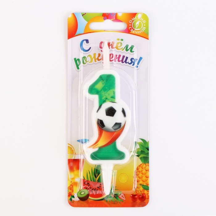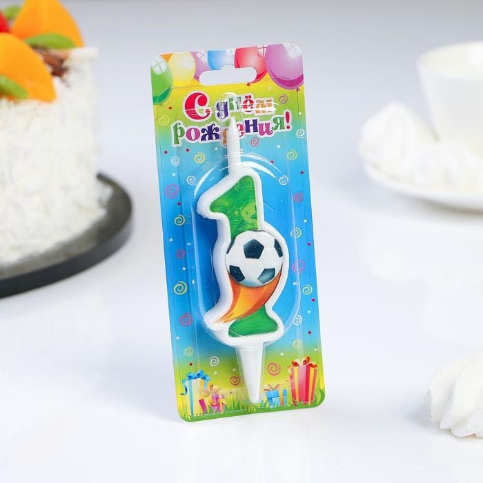 Свеча для торта "Футбольная", 10,2 см, зелёная цифра "1"