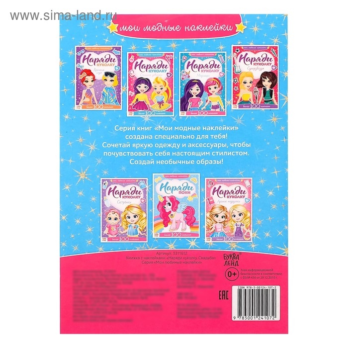 Серия книг «Наряди куколку» создана специально для юных модниц! Ребёнок сможет сочетать яркую одежду и аксессуары и почувствует себя настоящим стилистом. Создавайте вместе с малышкой самые необычные образы для торжественной церемонии и свадебного путешествия.