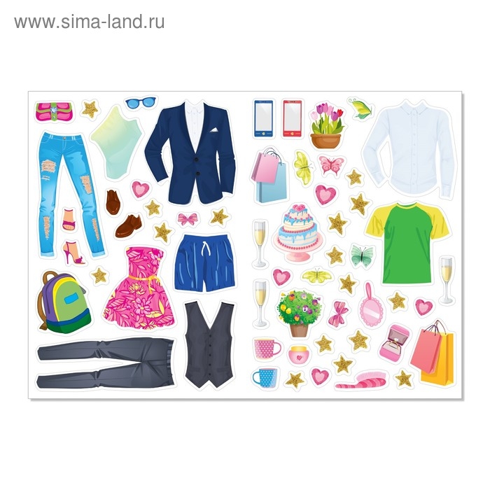 В книге ребёнка ждёт более 100 цветных наклеек с одеждой и аксессуарами для кукол.