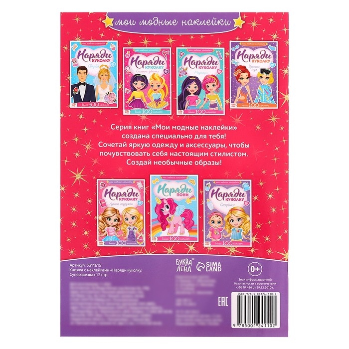 Серия книг «Наряди куколку» создана специально для юных модниц! Ребёнок сможет сочетать яркую одежду и аксессуары и почувствует себя настоящим стилистом. Создавайте вместе с малышкой самые необычные образы.
