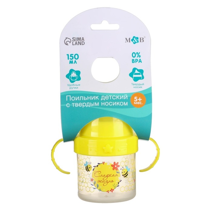 Поильник детский с твёрдым носиком «Сладкая жизнь», 140 мл., с ручками, цвет желтый
