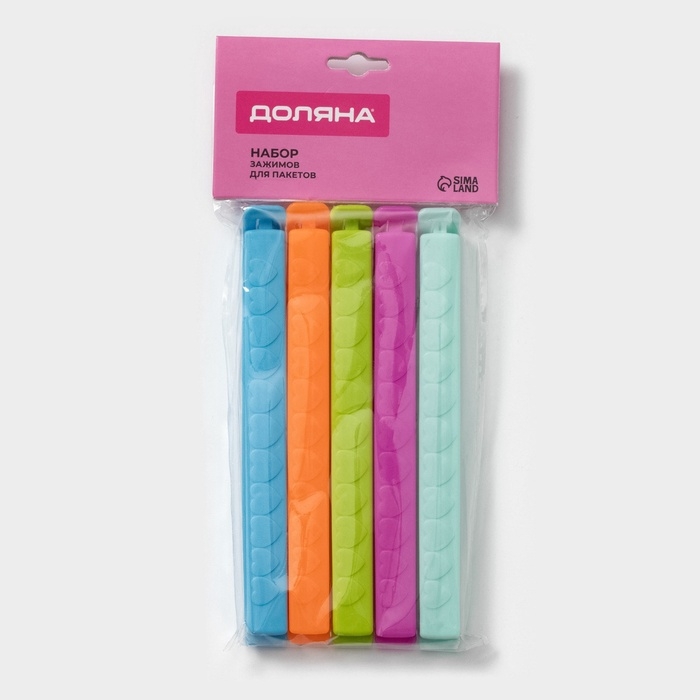 Зажимы для пакетов Доляна, 14 см, 5 шт, цвет МИКС
