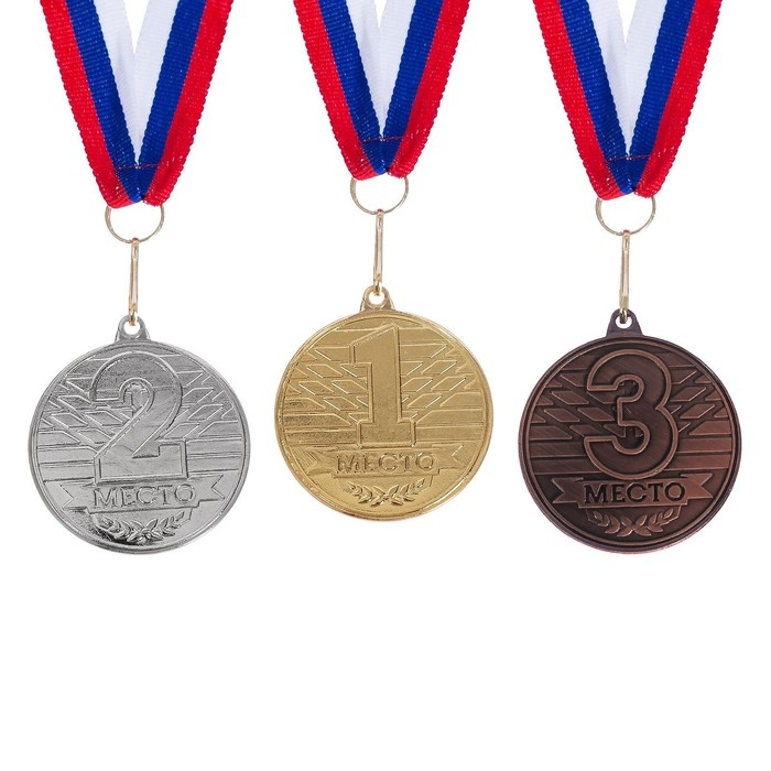 Медаль призовая 013, d= 5 см. 3 место, триколор. Цвет бронза. С лентой