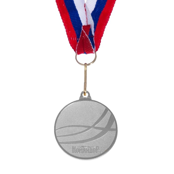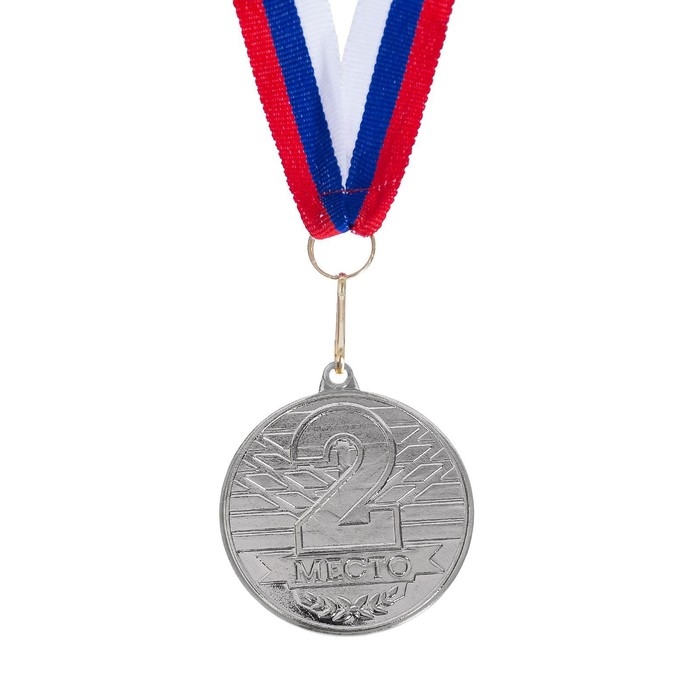 Медаль призовая 013, d= 5 см. 2 место, триколор. Цвет серебро. С лентой