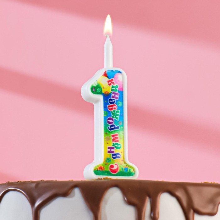 Свеча для торта цифра "День рождения", 10,2 см, цифра 1"