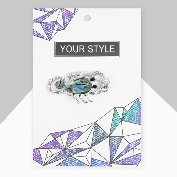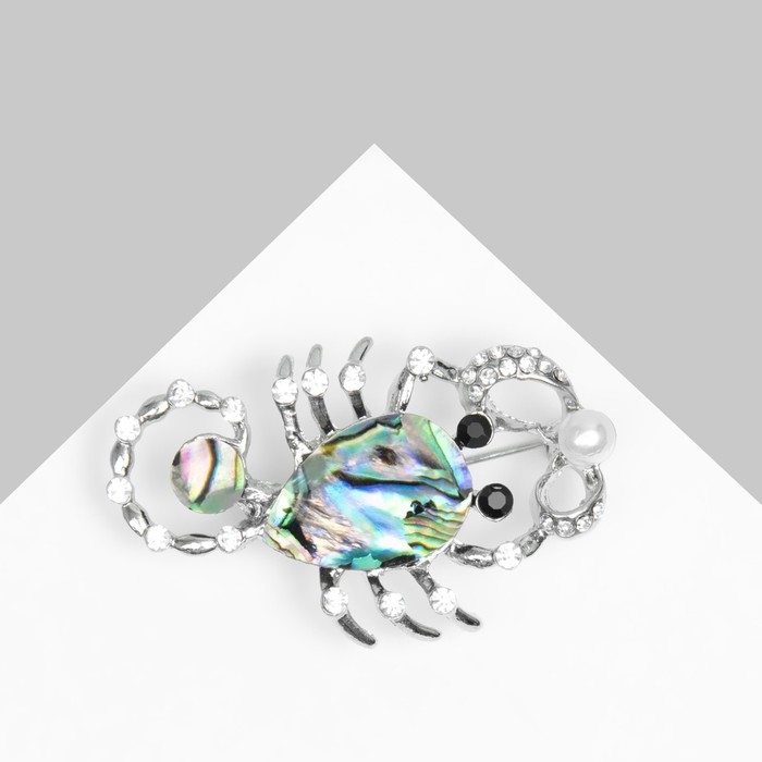 Брошь «Галиотис» скорпион с жемчужиной, цвет зелёный в серебре