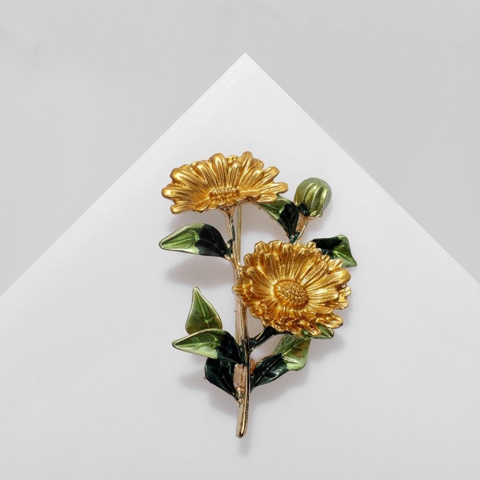 Брошь "Цветы" календула, цвет желто-зеленый в золоте