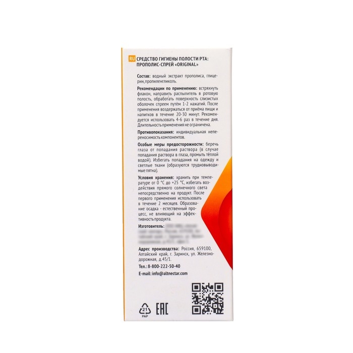 Состав: водный экстракт прополиса, пропиленгликоль, глицерин.