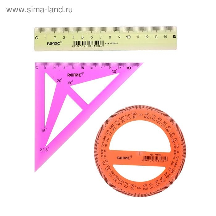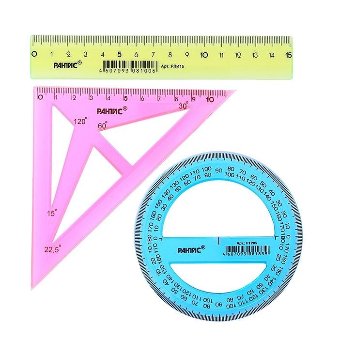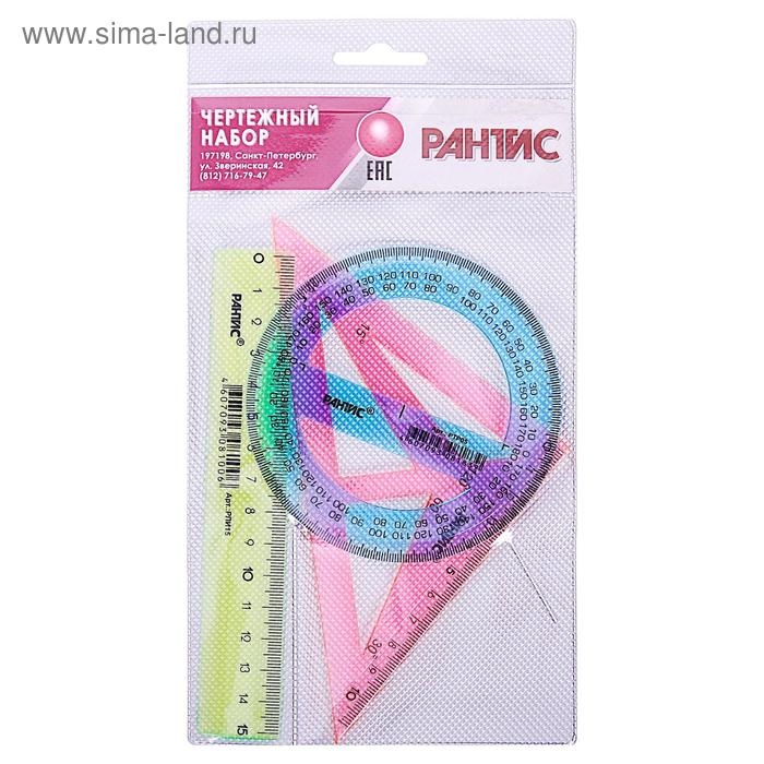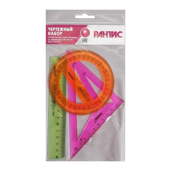 Набор чертёжный "РАНТИС", малый (линейка 15 см, транспортир 10 см, треугольник-трафарет), микс