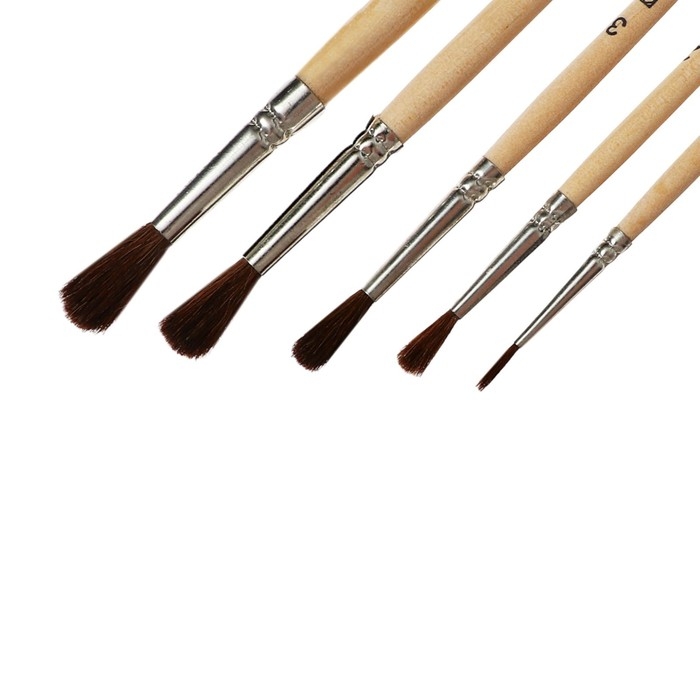Набор кистей белка круглые 5 штук (№1,2,3,4,5) с деревянными ручками на блистере
