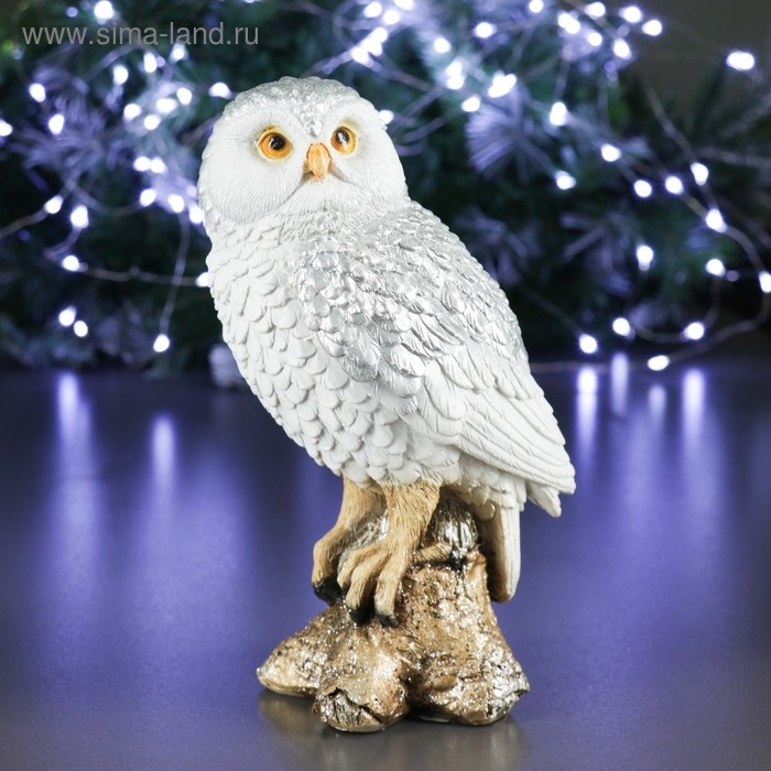 Новогодняя фигура "Сова на коряге" серебро 9х12х19см