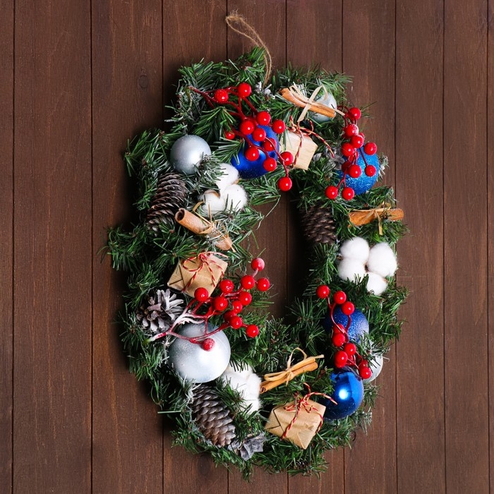 Новый год. Венок праздничный «Морозное утро»,45 см, ручная работа