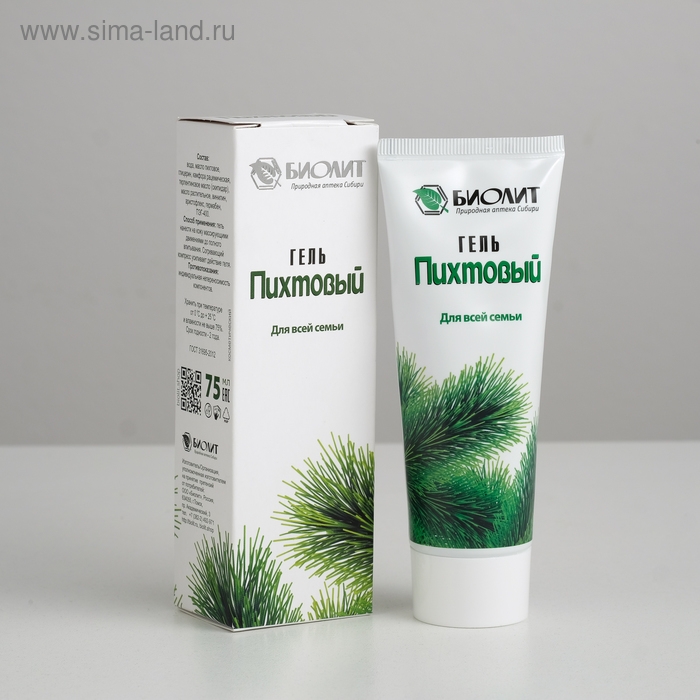 Пихтовый гель — эффективное природное противовоспалительное, ранозаживляющее, антисептическое средство. Способствует регенерации ткани при косметических дефектах кожи. Применяется для профилактики и в комплексной терапии бронхитов, острых респираторных заболеваний. При остеохондрозе, артрозах, артритах, миозитах, невритах и невралгиях. Устраняет отёки и воспаления при ушибах, растяжениях, снимает зуд при дерматозах и укусах насекомых.