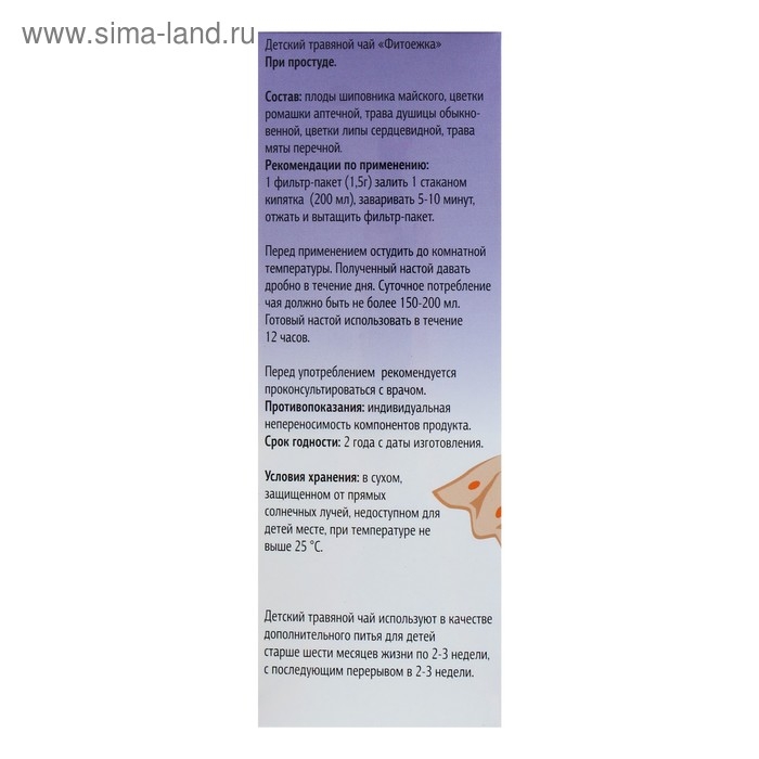 Детский травяной чай "Фитоежка" При простуде, 20 пакетиков по 1,5 г