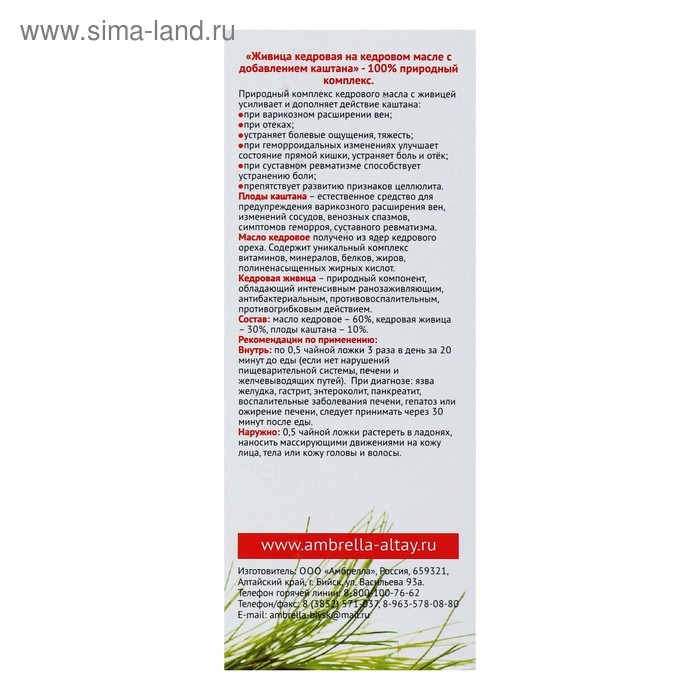 «Живица кедровая на кедровом масле с добавлением каштана» — 100%-ый природный комплекс.