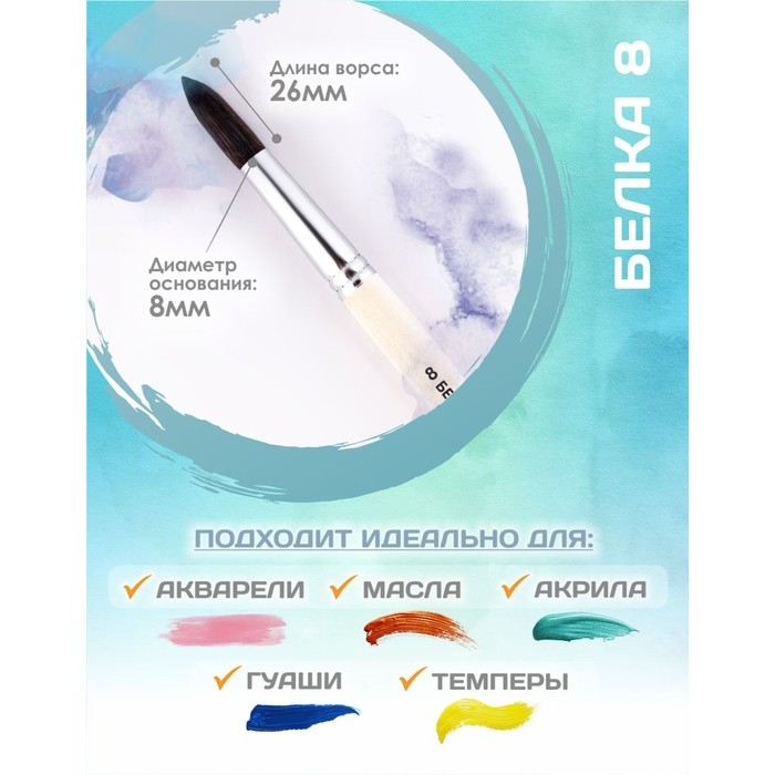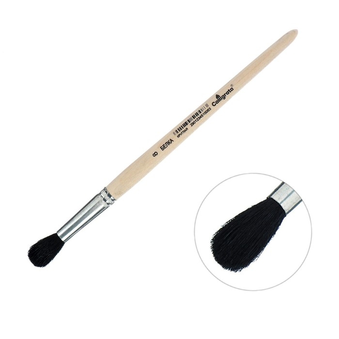 Кисть для рисования, Белка круглая № 8 (диаметр обоймы 8 мм; длина волоса 26 мм), деревянная ручка, Calligrata