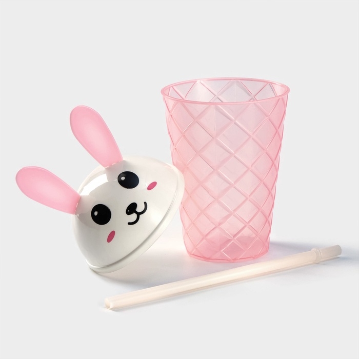 Стакан пластиковый с крышкой и трубочкой Доляна «Зайка», 500 мл, цвет МИКС