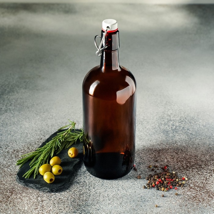Бутылка бугельная, 1 л, с пробкой, цвет коричневый
