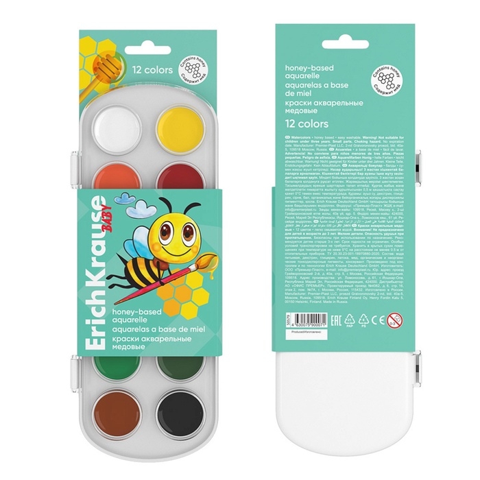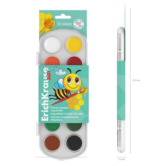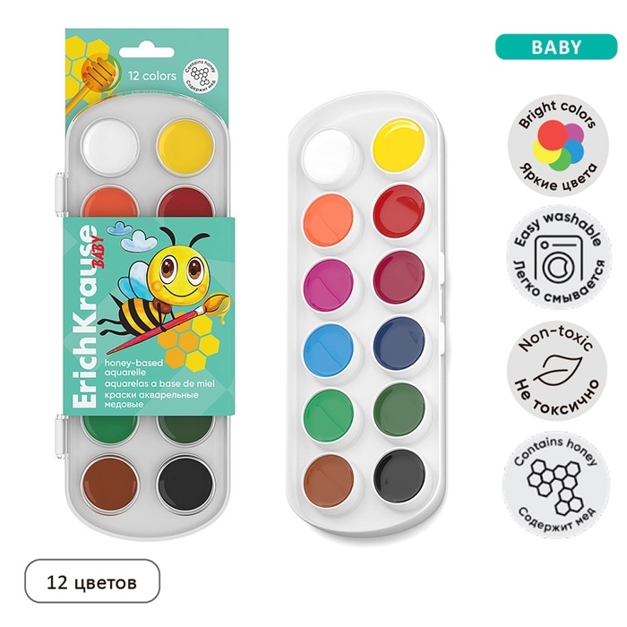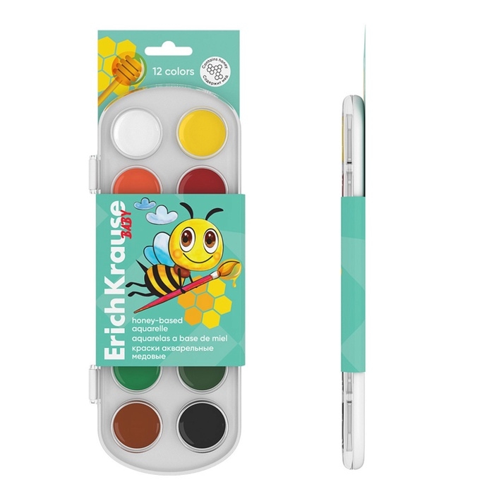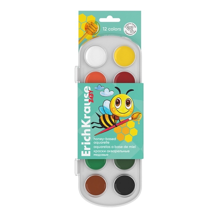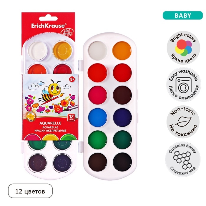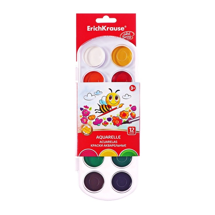 Акварель 12 цветов, ErichKrause ArtBerry, медовая, без кисти, пластиковая коробка, европодвес