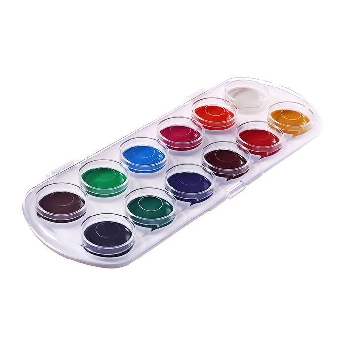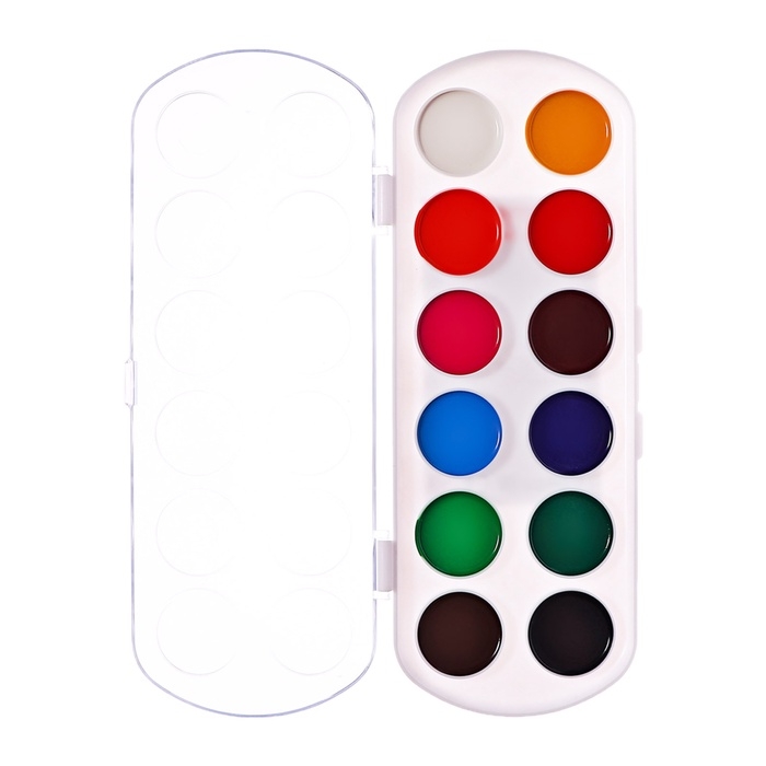 Краски акварельные, в кюветах, с кистью, 12 цветов