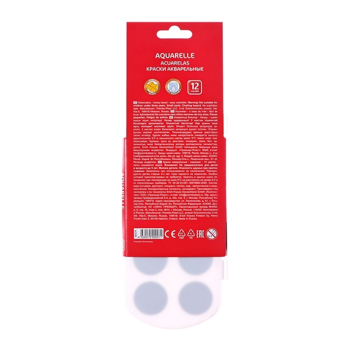 Краски акварельные 12 мл, в металлической тубе, в картонной коробке, 12 цветов