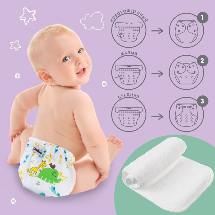 Многоразовый подгузник «Звезды», 3-15 кг, цвет белый, Крошка Я