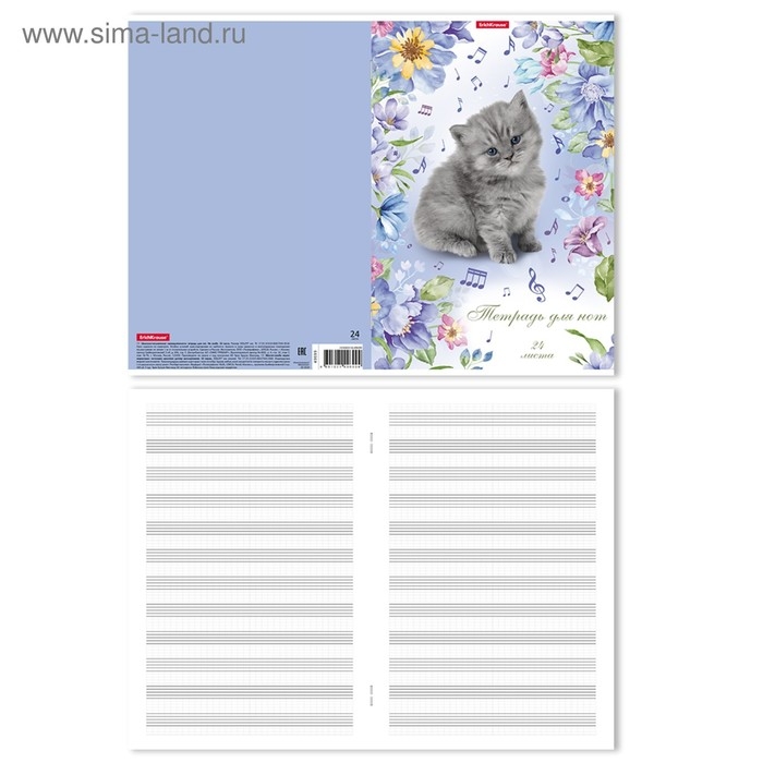 Тетрадь для нот А4, 24 листа, ErichKrause "Мурзики", вертикальная ориентация, обложка мелованный картон, блок офсет 100% белизна, МИКС (1 вид в спайке)