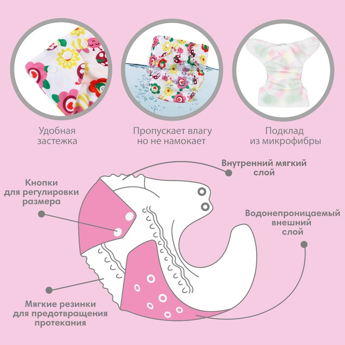 • Подгузник имеет удобный кармашек для вкладыша;
