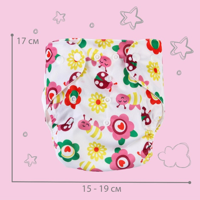 Многоразовый подгузник «Звезды», 3-15 кг, цвет белый, Крошка Я