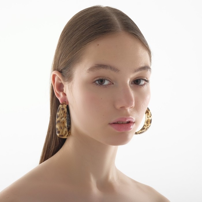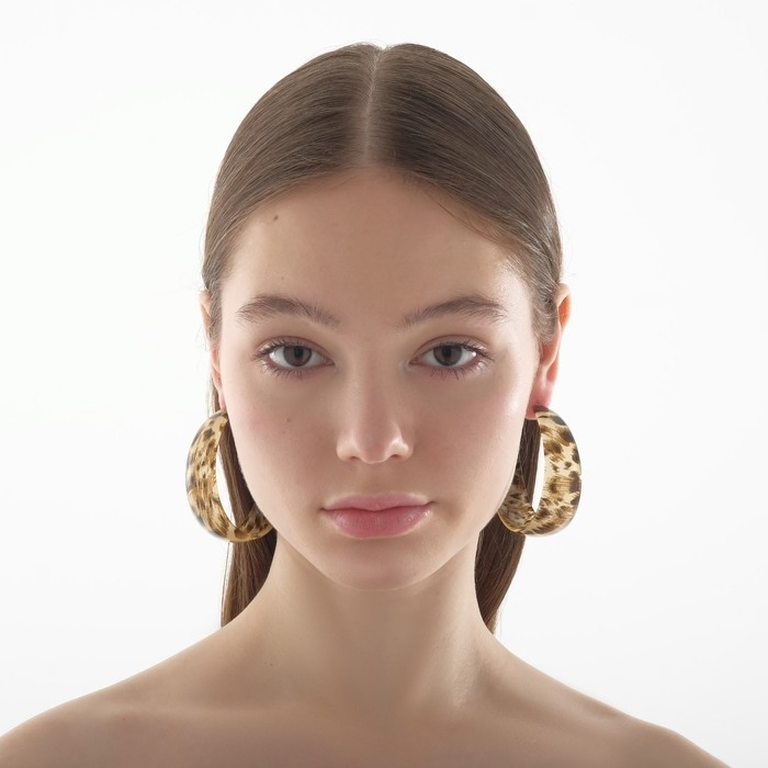 Серьги-кольца «Танзания» бежевый леопард, d=5,5, цветные