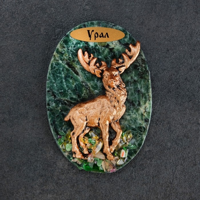 Магнит "Олень. Урал", 10х7 см, змеевик, гипс