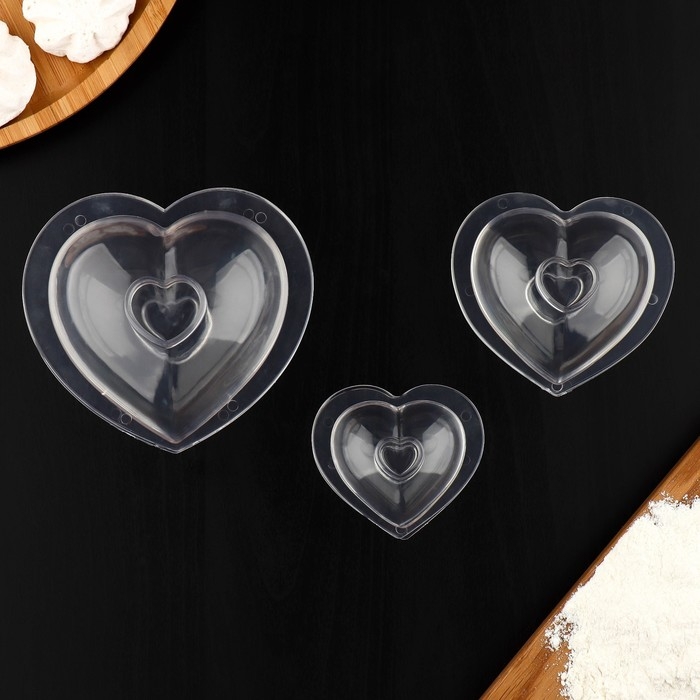 Набор молдов Доляна «Сердца», 3 шт, 11,2×10,5×9,5 / 9×7,7×6,5 / 7×5,5×4,5 см, цвет прозрачный