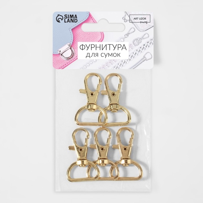Карабин металлический, 42 × 25 мм / 21 × 2,1 мм, 5 шт, цвет золотой
