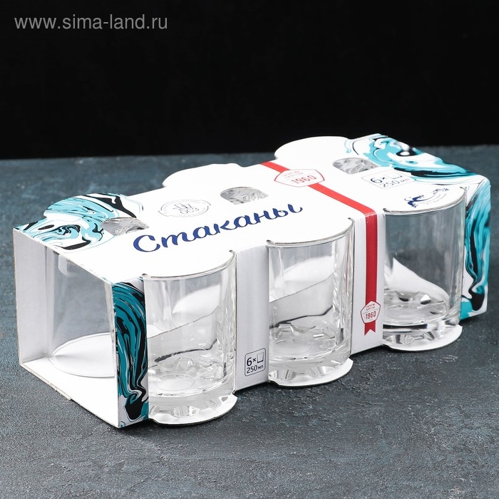 Набор стеклянных стаканов «Глория», 250 мл, 6 шт