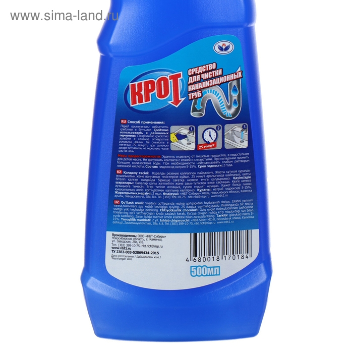 Средство для прочистки труб. Средство быстро проникает через засоры, пробивает пробки в стоках, удаляет неприятные запахи и растворяет различные отложения. Подходит для любого типа сливных труб, в том числе из пластика.
