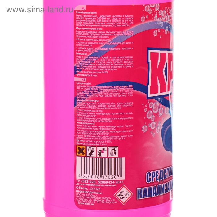 Меры предосторожности: вызывает сильные ожоги. Использовать резиновые перчатки. Хранить в закрытой таре, в недоступном для детей и животных месте. Хранить вдали от пищевых продуктов, напитков и кормов. Избегать контакта с кожей и попадания в глаза. При попадании средства в глаза промыть большим количеством воды. Срок годности 2 года с даты изготовления.