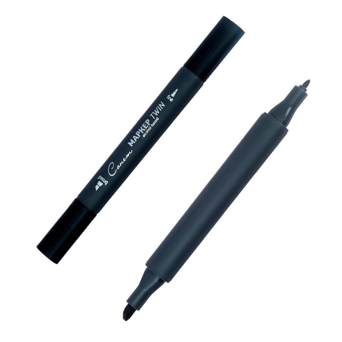 Маркер художественный, ЗХК "Сонет" TWIN, двусторонний: пулевидная/скошенная, спиртовая основа, чёрный, 164125-120
