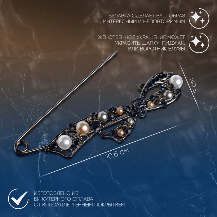 Данная булавка – настоящая находка для модниц, предпочитающих нетривиальные аксессуары. Брошь-булавка станет не только оригинальным дополнением вашего наряда, но и позволит без труда приколоть при необходимости палантин или шейный платок. Используйте её в качестве украшения шляпки, рубашки или галстука. Булавка «Бант», 10,5 см, цветная в сером металле внесёт особую нотку изящности в ваш образ.