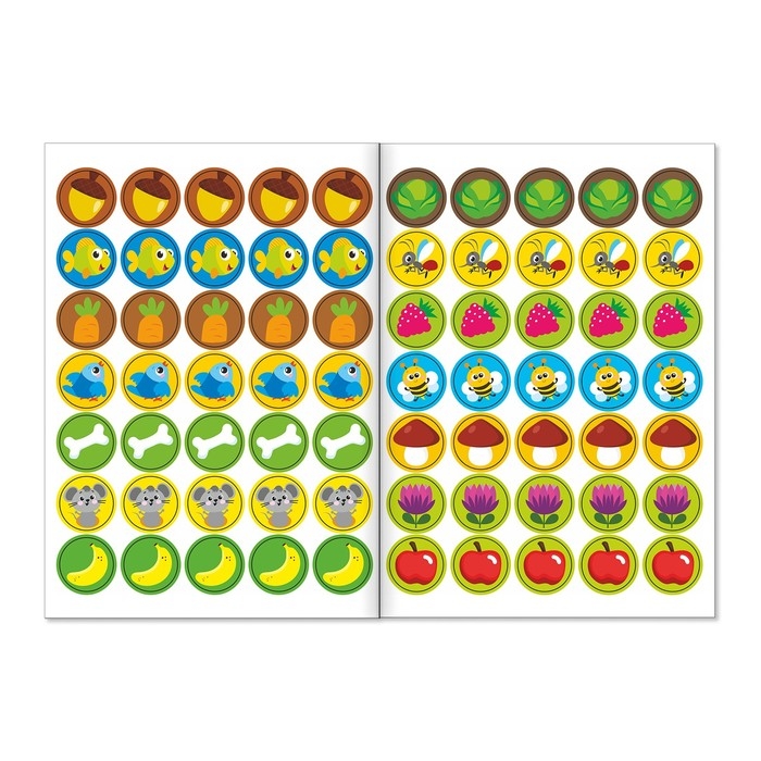 - В каждой книге по 70 наклеек-кружочков.