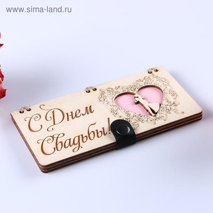 Конверт деревянный "С Днём Свадьбы!" ручная работа, сердце, 16,5х8х0,9см