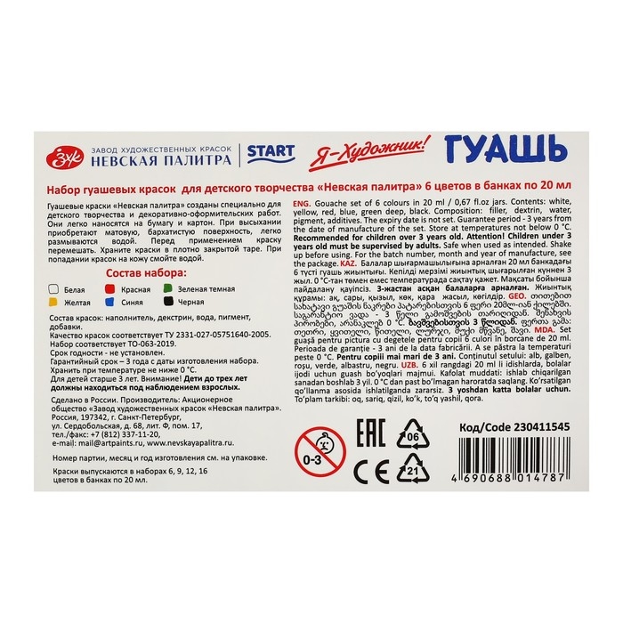 Гуашь 6 цветов, 20 мл, ЗХК "Я - Художник!" (230411545)