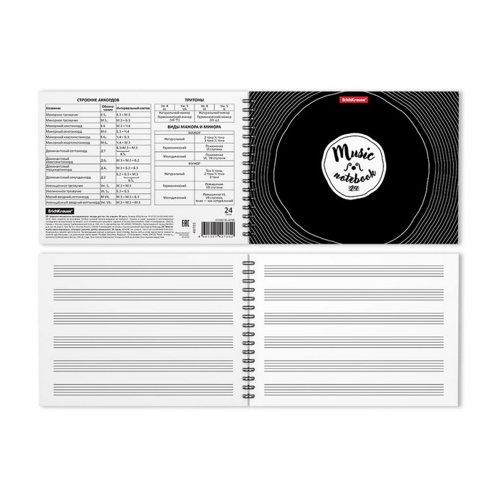 Тетрадь для нот А5 24 листа на гребне ErichKrause Just Music, обложка мелованный картон, со справочной информацией