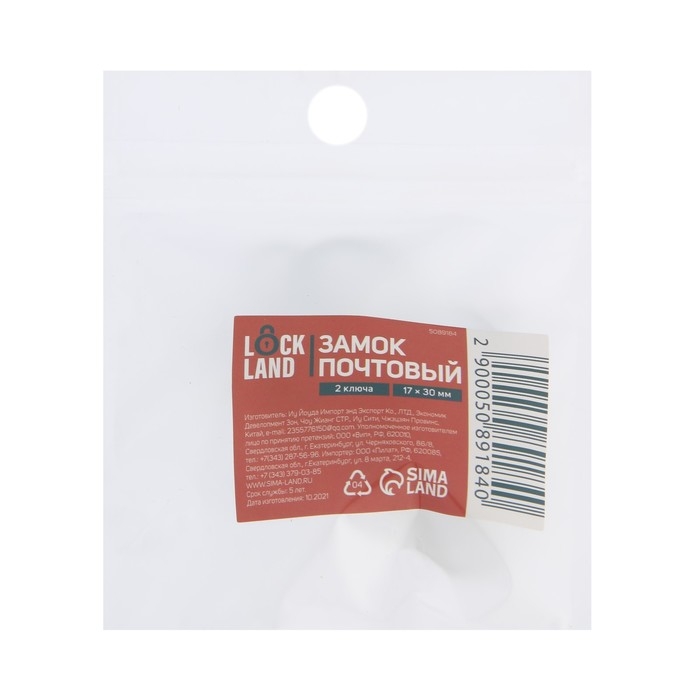 Замок почтовый LOCKLAND, 17х30 мм, 2 ключа, 1 шт.