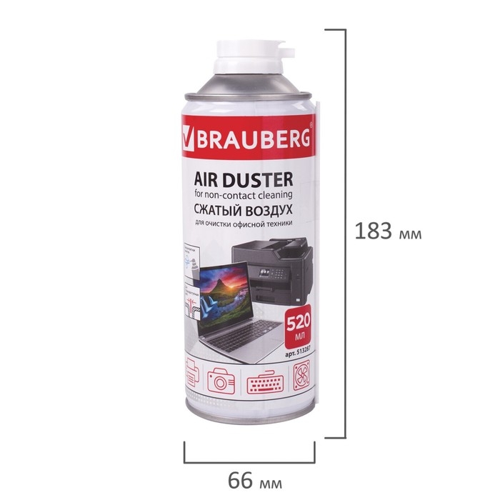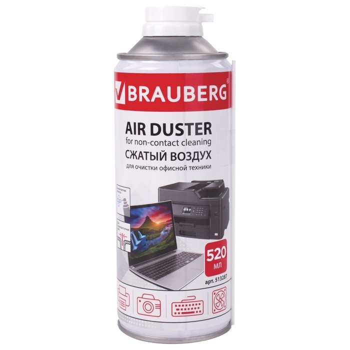 Баллон для очистки офисной техники BRAUBERG, со сжатым воздухом, 520 мл