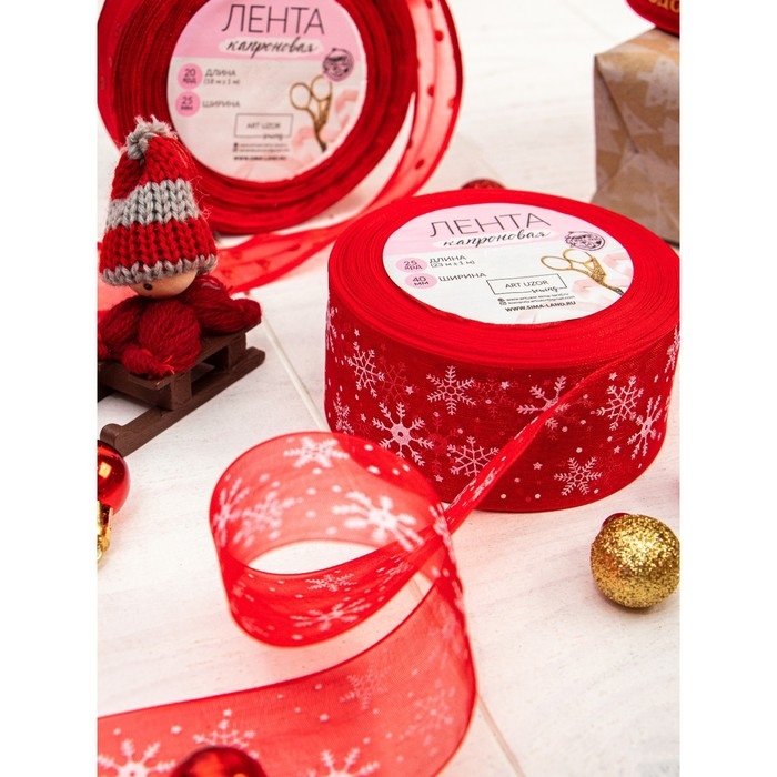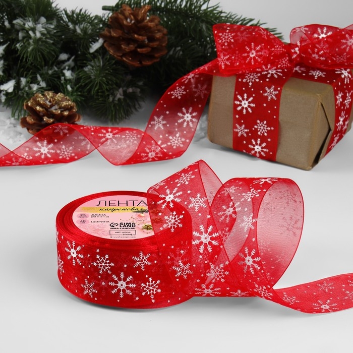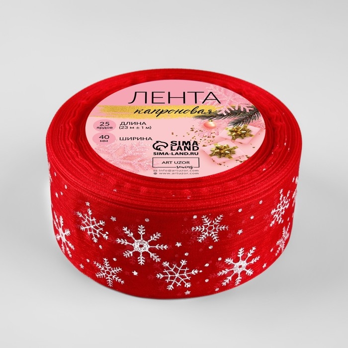 Новый год! Лента капроновая «Снежинки», 40 мм × 23 ± 1 м, цвет красный/белый