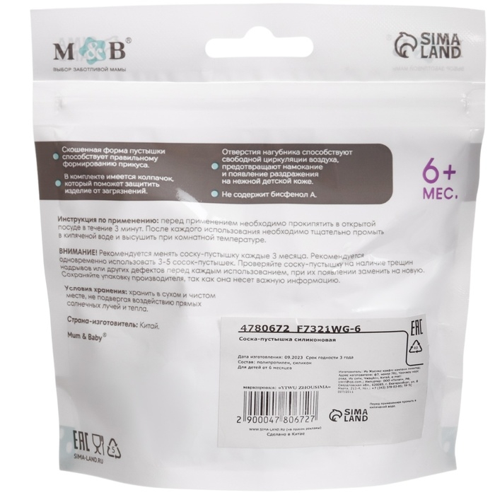 Соска пустышки силиконовая и имеет анатомическую форму диска, специальные вентиляционные отверстия на пустышке улучшают циркуляцию воздуха не раздражают кожу малыша и не оставляют следов и опрелостей. Создана для удовлетворения естественного сосательного рефлекса малышей. Пустышка анатомической формы имеет немного сплюснутый сосок, благодаря чему прилегает к языку.