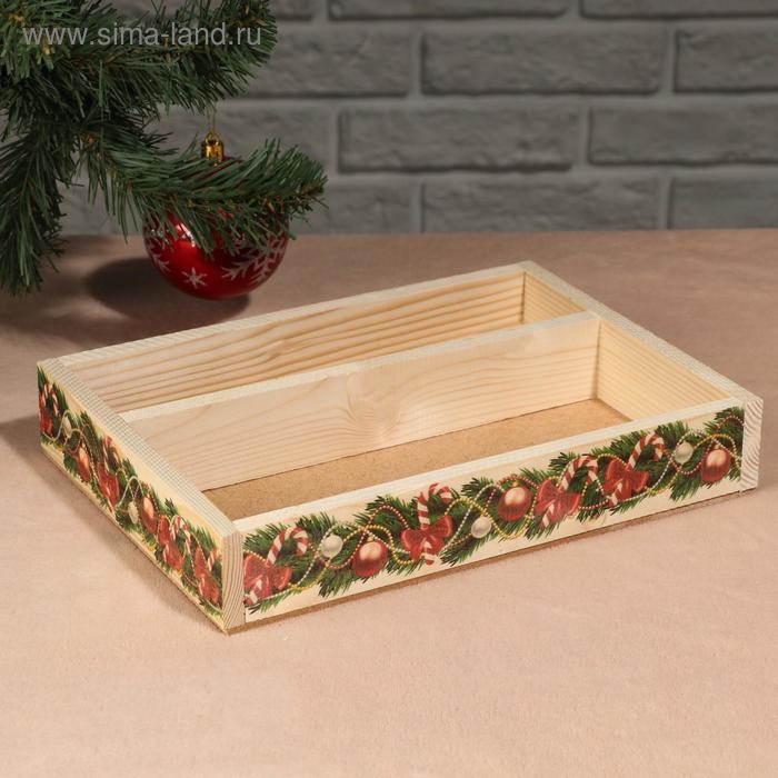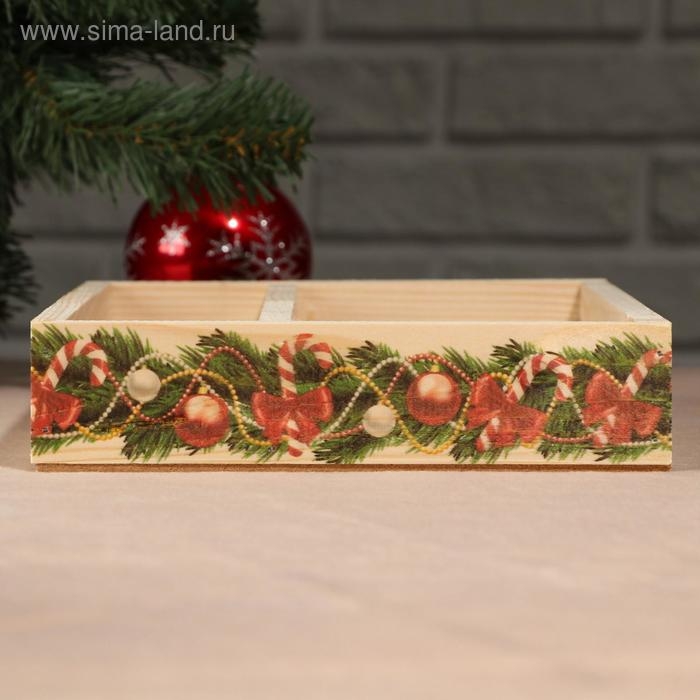 Новый год. Ящик-кашпо подарочный "Новогодняя гирлянда", 2 отдела, 25,5×20×5 см
