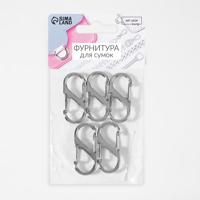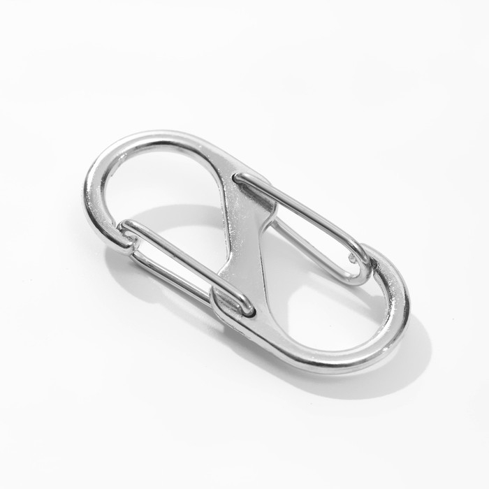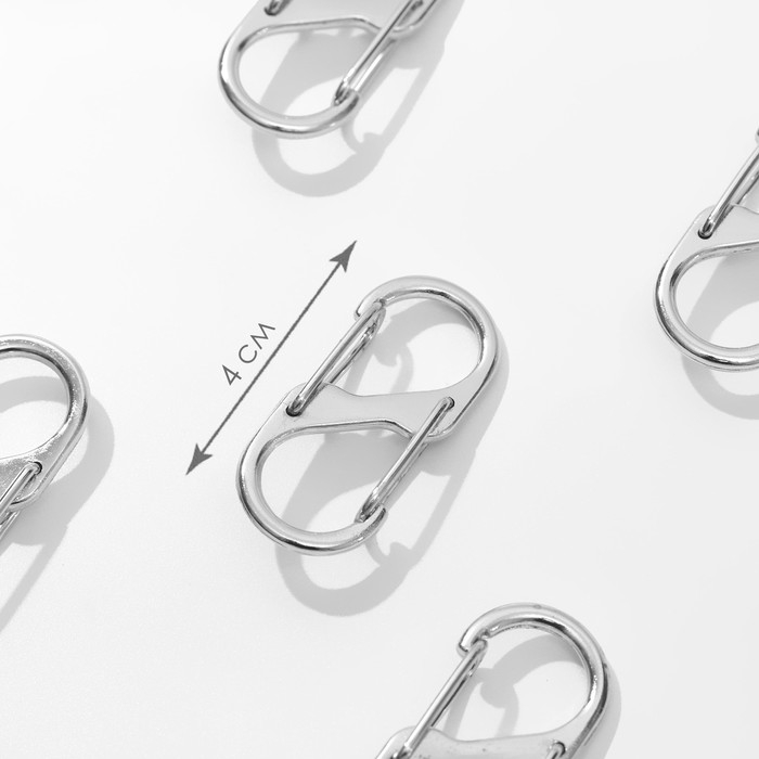 Карабин металлический, двойной, 40 × 18 мм, 5 шт, цвет серебряный