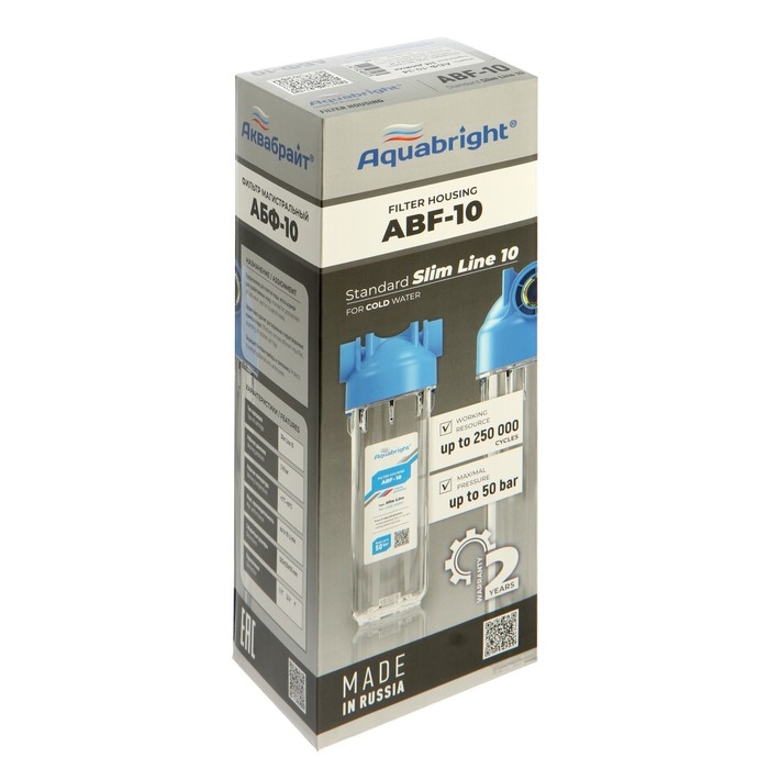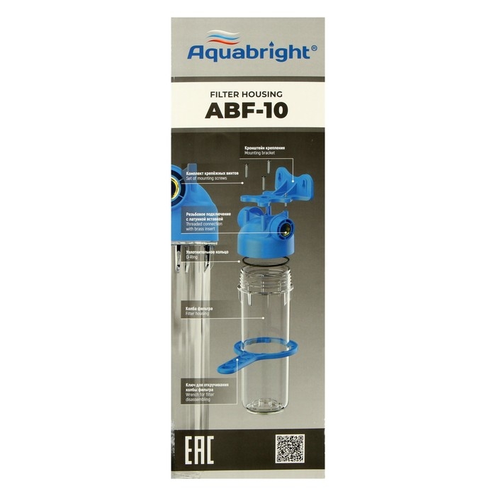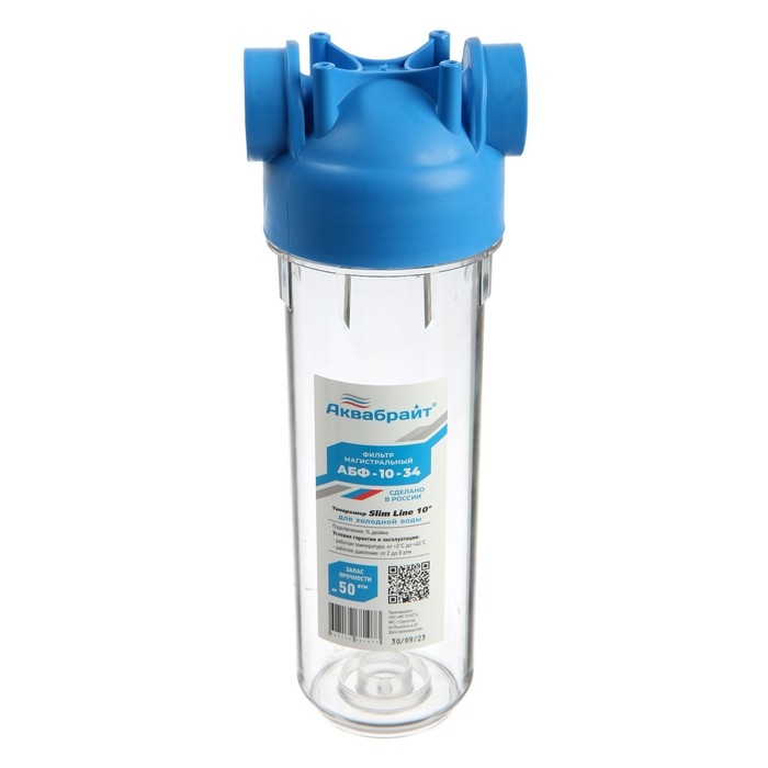 Корпус для фильтра "Аквабрайт" АБФ-10-34, 3/4", для холодной воды, ключ и крепеж, прозрачный